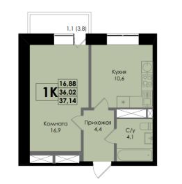 Общая площадь37,14 м²