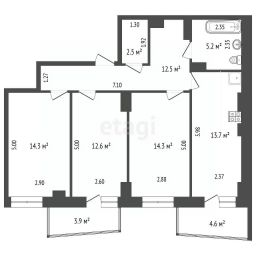 Эта квартира общей площадью 79 м² (с двумя лоджиями 83 м²)