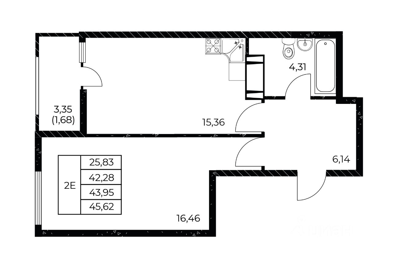 Общая площадь45,62 м²