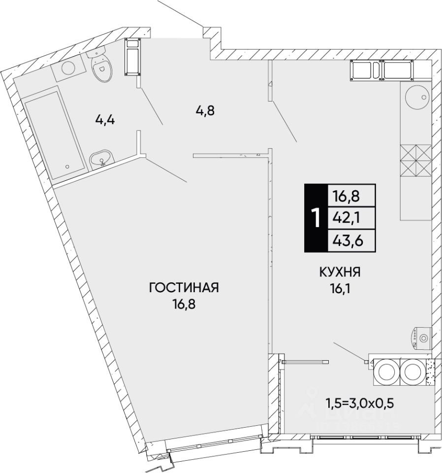 Площадь кухни16,1 м²