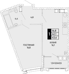 Общая площадь43,6 м²