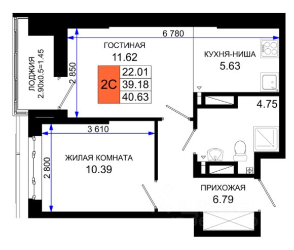 40,63 м²