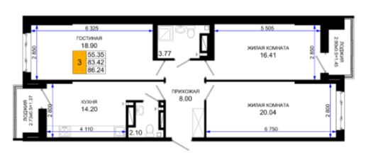 Общая площадь86,24 м²