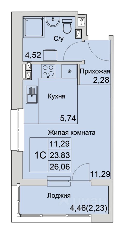 Общая площадь26,06 м²