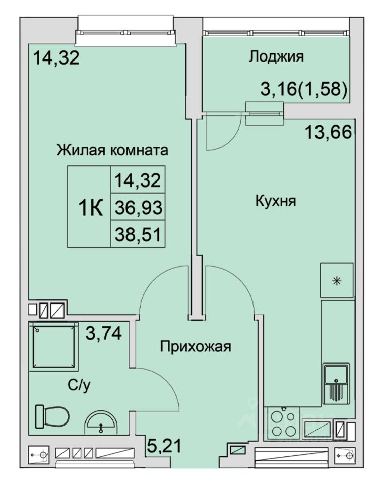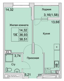 Жилая площадь14,3 м²
