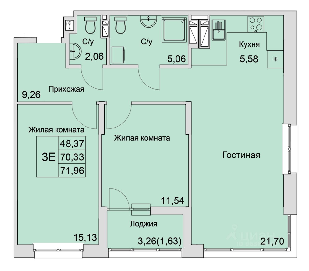 Общая площадь71,96 м²