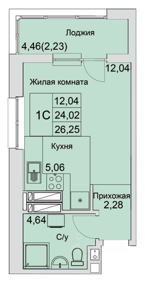 Общая площадь26,25 м²