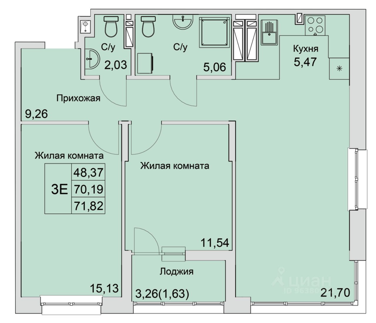 Общая площадь71,82 м²