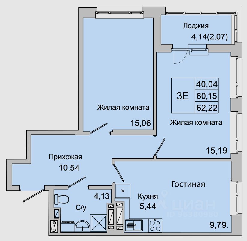 Общая площадь62,22 м²