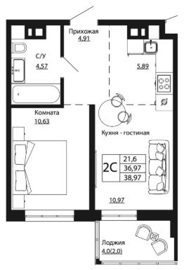 21,6 м²