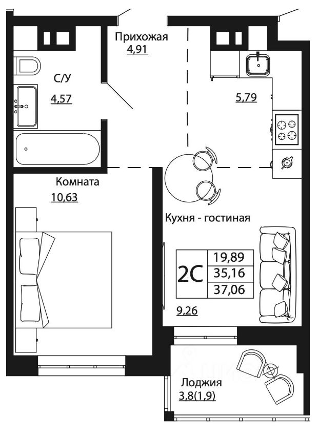 36,96 м²