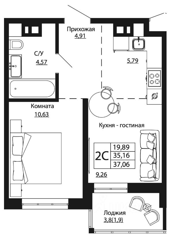 36,96 м²