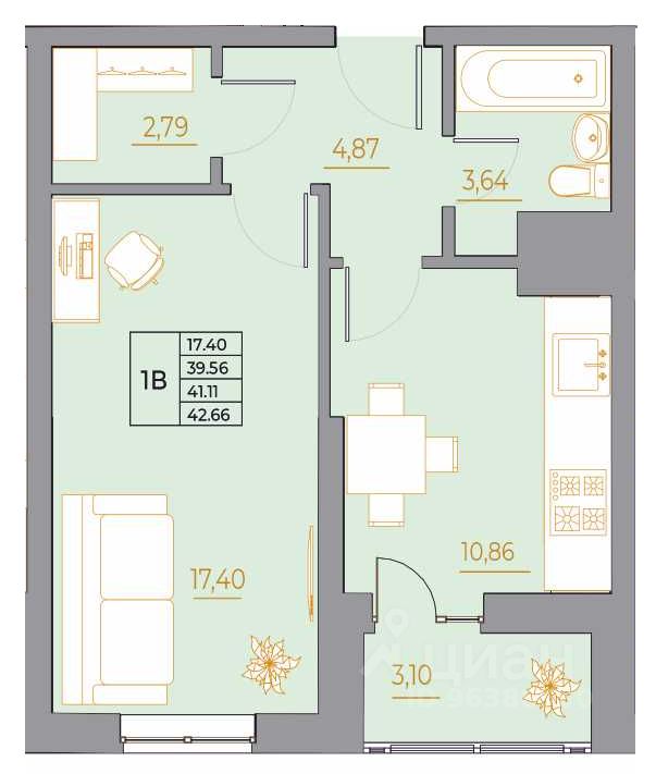 Общая площадь42,66 м²