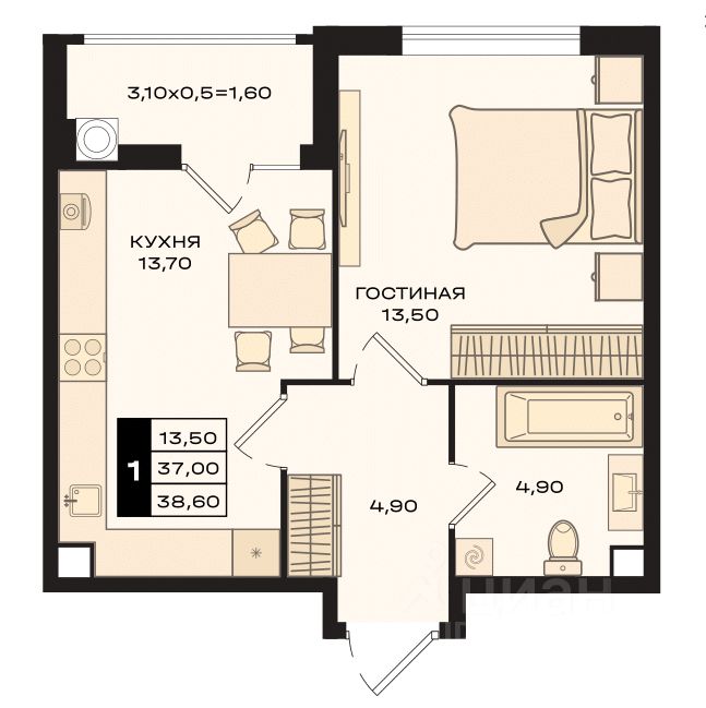 1 лоджия