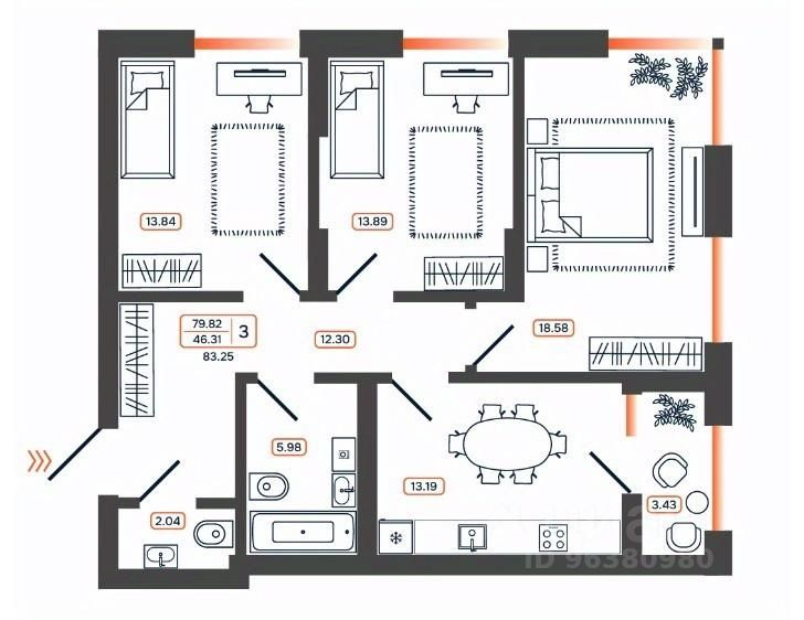83,25 м²