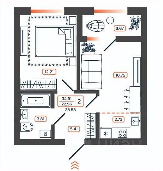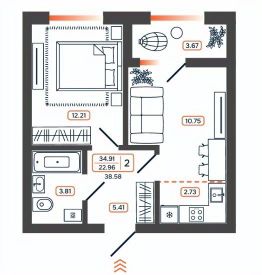38,58 м²