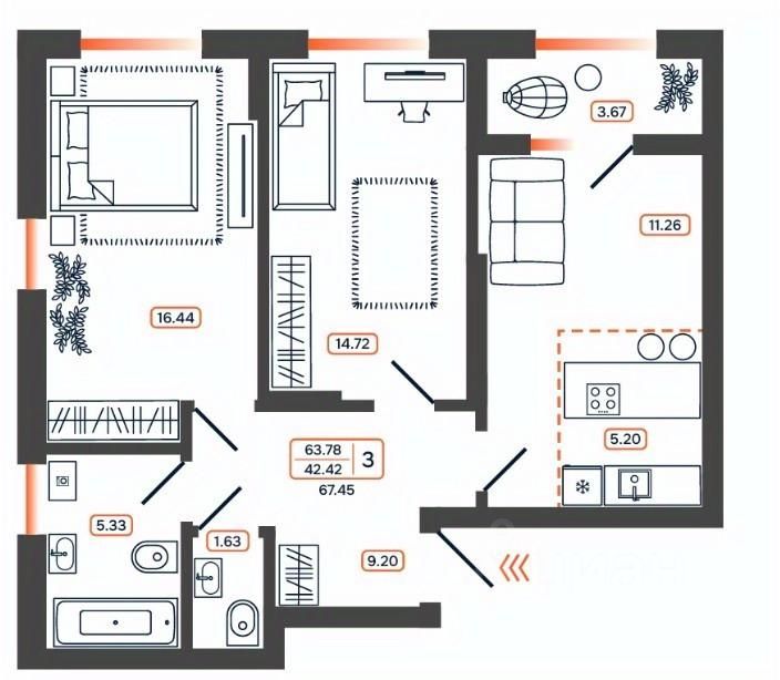 67,45 м²