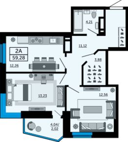 Продаётся 2-комнатная квартира в строящемся доме (Позиция 5), срок сдачи: IV-кв. 2025, общей площадью 59.44 кв.м., на 15 этаже. Жилой комплекс "Донской Арбат" от Московской Строительной Компании расположен по адресу г. Ростов-на-Дону, пр-кт Кировский, д. 89.