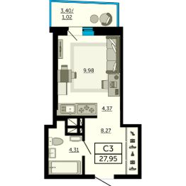 Общая площадь27,95 м²