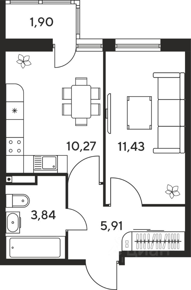 11,4 м²