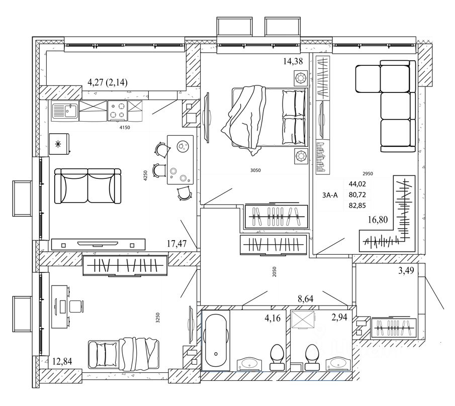 Продаётся 3-комнатная квартира в строящемся доме (Дом 1), срок сдачи: I-кв. 2028, общей площадью 85.53 кв.м., на 15 этаже. Новый жилой комплекс от группы компаний "СК Максимум" расположен по адресу: г. Ростов-на-Дону, по ул. пр-кт Стачки.