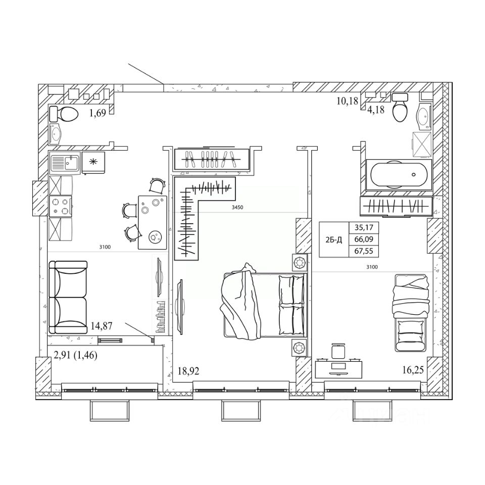Продаётся 2-комнатная квартира в строящемся доме (Дом 1), срок сдачи: I-кв. 2028, общей площадью 70.1 кв.м., на 7 этаже. Новый жилой комплекс от группы компаний "СК Максимум" расположен по адресу: г. Ростов-на-Дону, по ул. пр-кт Стачки.