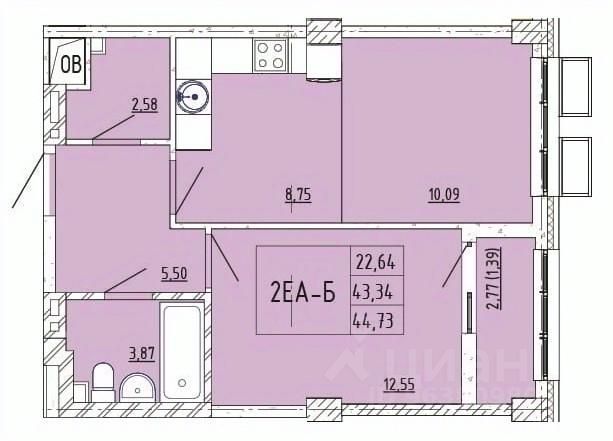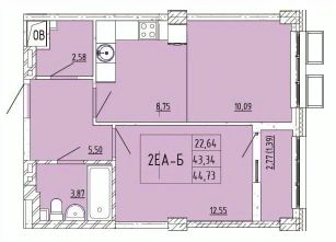 44,73 м²