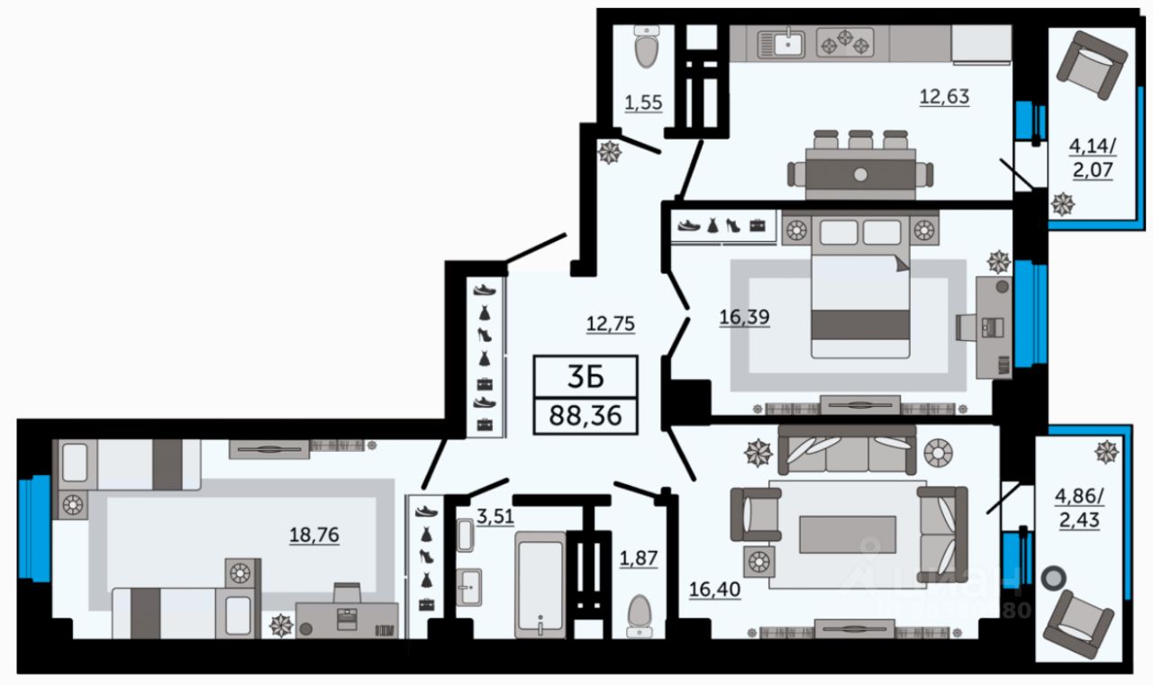 Продаётся 3-комнатная квартира в строящемся доме (Дом 2), срок сдачи: IV-кв. 2028, общей площадью 88.36 кв.м., на 5 этаже. Новый жилой комплекс "Four Premieres" от компании "Московская строительная компания" расположен по адресу г. Ростов-на-Дону по ул. Мечникова.