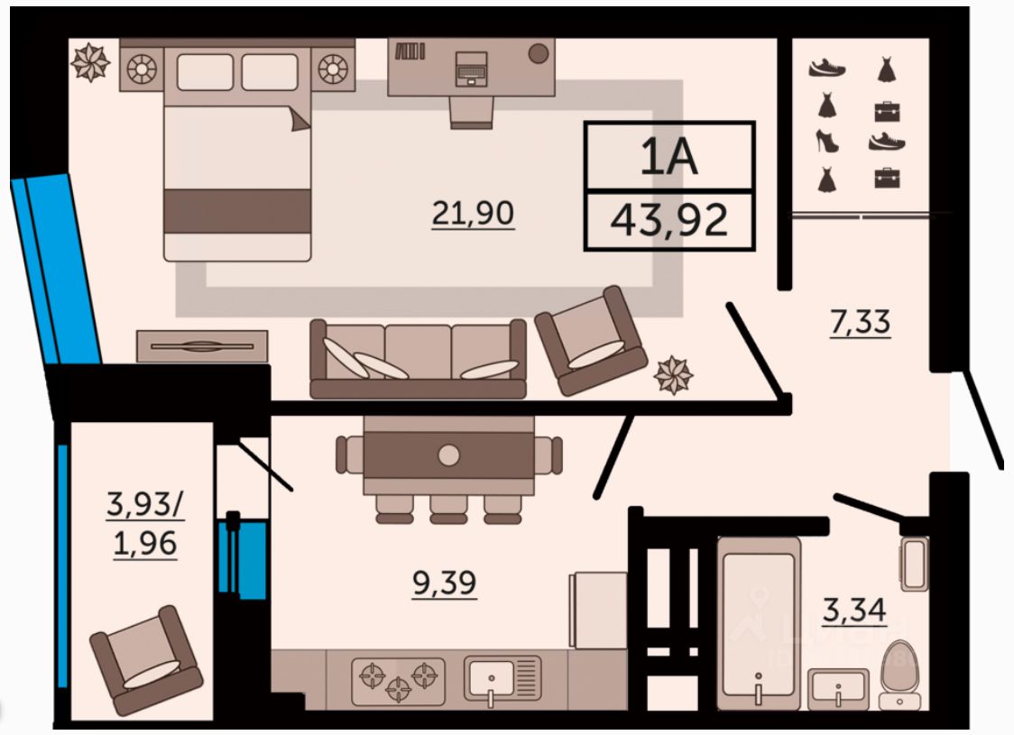 Продаётся 1-комнатная квартира в строящемся доме (Дом 3), срок сдачи: IV-кв. 2028, общей площадью 43.92 кв.м., на 12 этаже. Новый жилой комплекс "Four Premieres" от компании "Московская строительная компания" расположен по адресу г. Ростов-на-Дону по ул. Мечникова.
