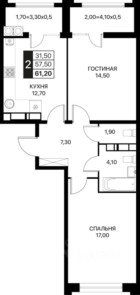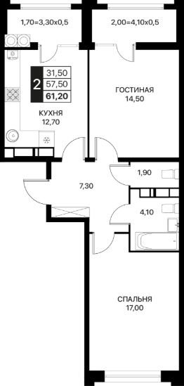 Общая площадь61,2 м²