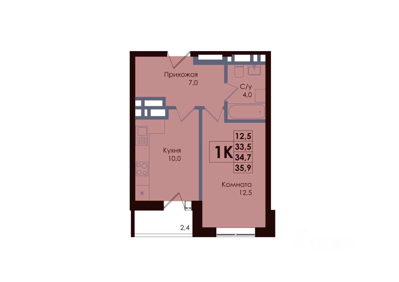 Общая площадь34,7 м²