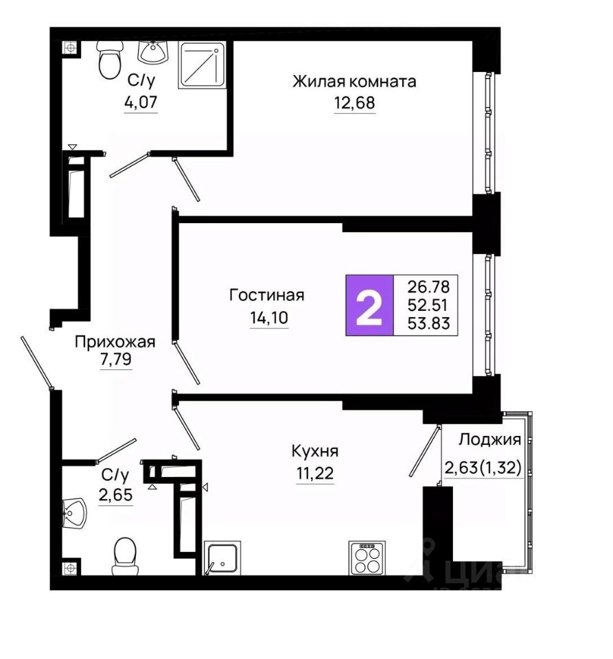 53,83 м²