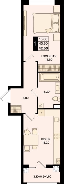 Общая площадь42,5 м²