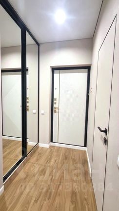 Просторный холл со шкафом для вещей, зеркалом.