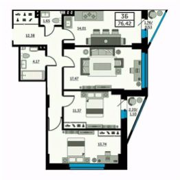 Общая площадь76,64 м²
