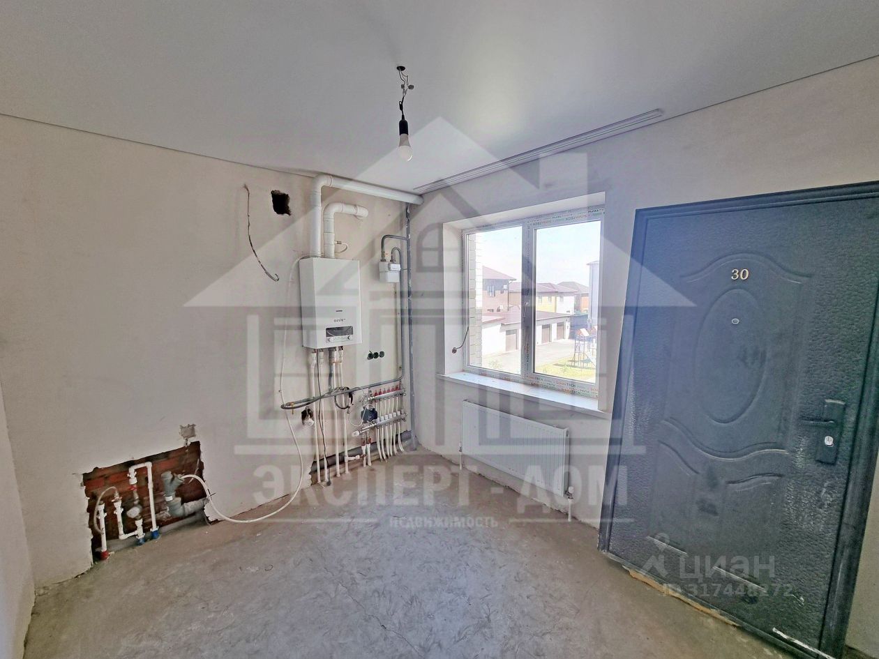 В коридоре плитка, в комнатах — сделана стяжка и оштукатурены стены