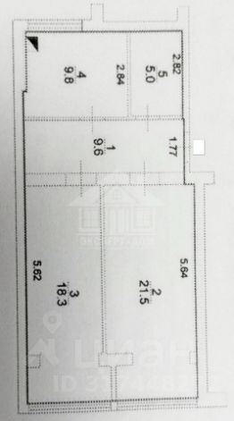 Жилая площадь — 39,8 м² (две раздельные комнаты: 21,5 м² и 18,3 м²)