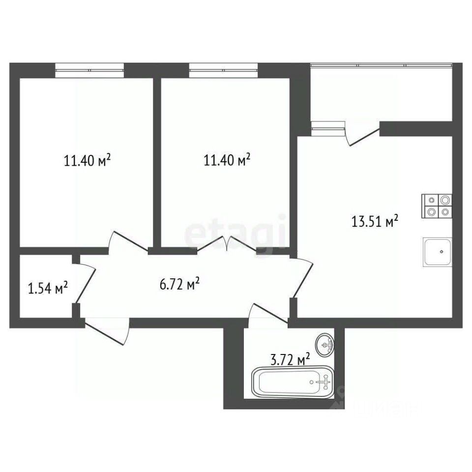 Общая площадь 50м2 ,площадь кухни 13.5м2