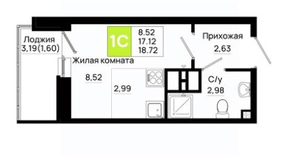 18,72 м²