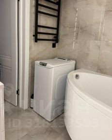 Подвесной унитаз инсталляция, стиральная машина вертикальной загрузки Haier, гигиеничекий душ , электро/полотенцесушитель с полочкой (эргономичное решение хранение полотенец), зеркало с подсветкой , вместительная подвесная тумба.