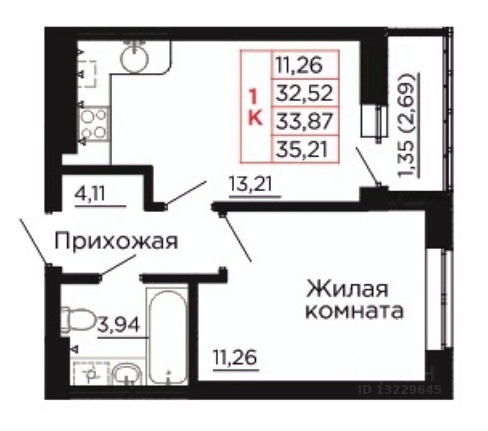 Общая площадь34,4 м²