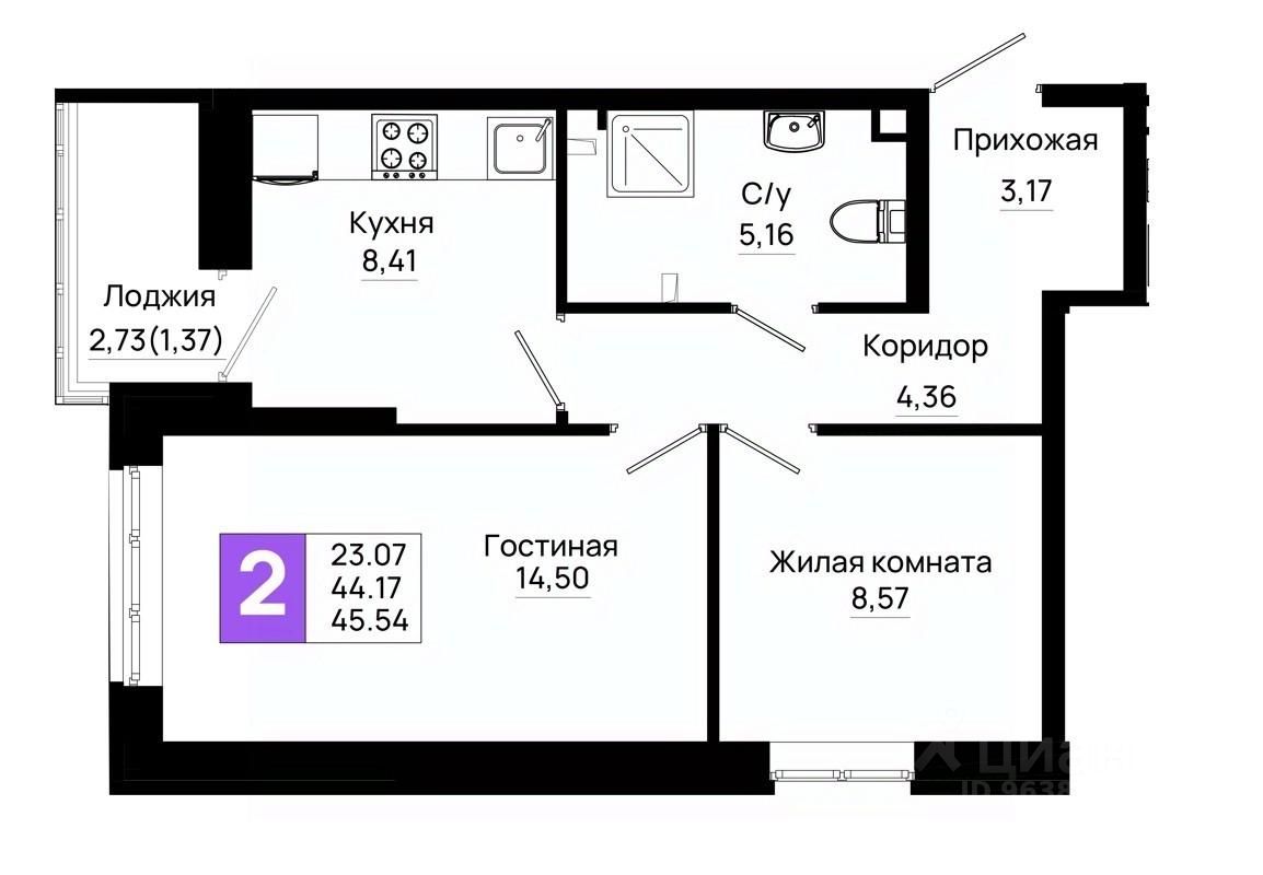 45,54 м²