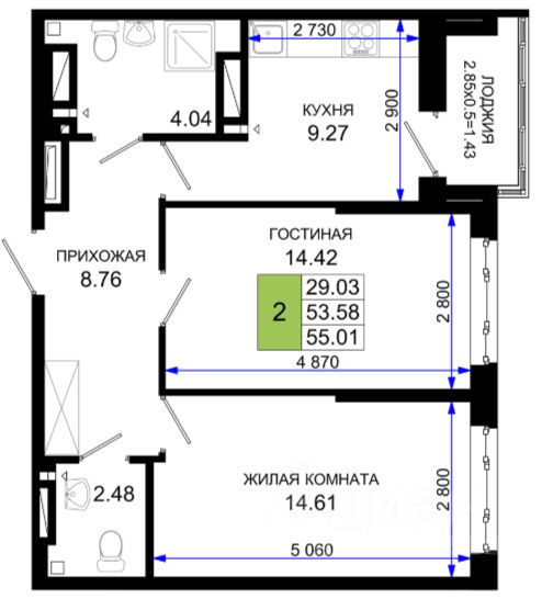 55,01 м²