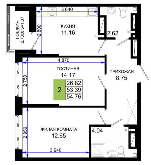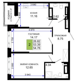 54,76 м²