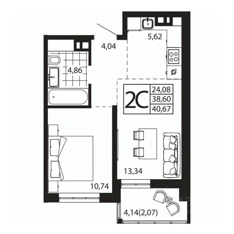 40,45 м²