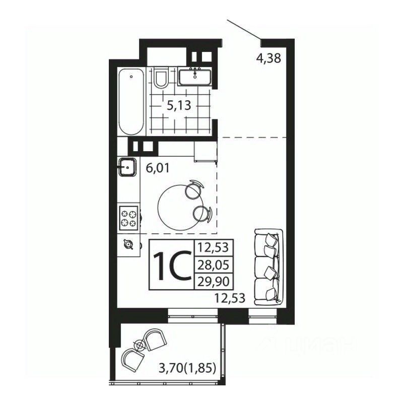 Жилая площадь12,3 м²