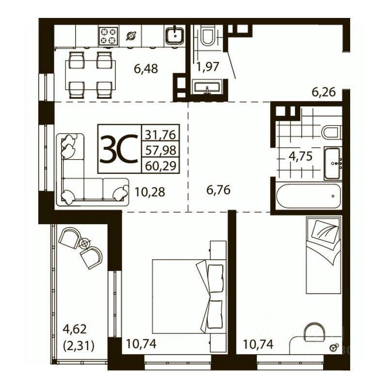 Общая площадь60,29 м²