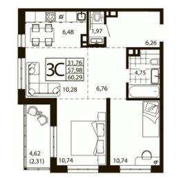 Продается 2-комн. квартира, 60,29 м²