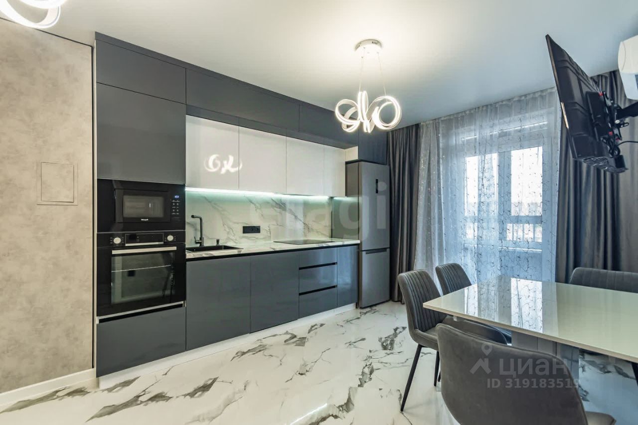 Просторная кухня-гостиная площадью 16 м² с качественной встроенной техникой.