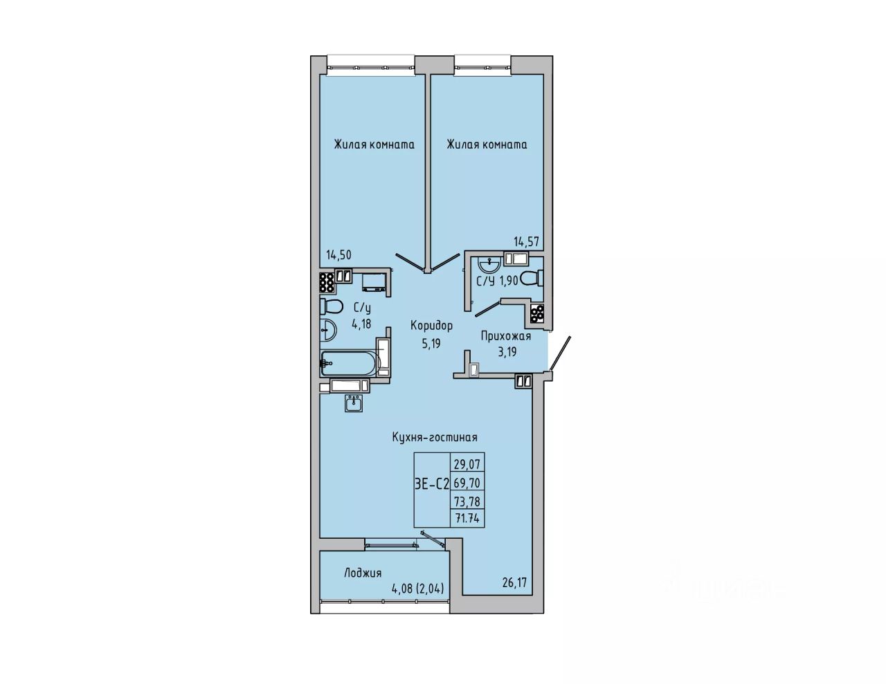 Общая площадь71,74 м²
